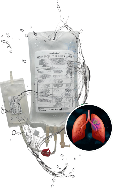 LungProtect® is an advanced hypothermic preservation solution designed for optimal intracellular-like protection, ensuring safe flushing, storage, and transport of explanted lungs with minimized cellular injury and maintained lung viability.